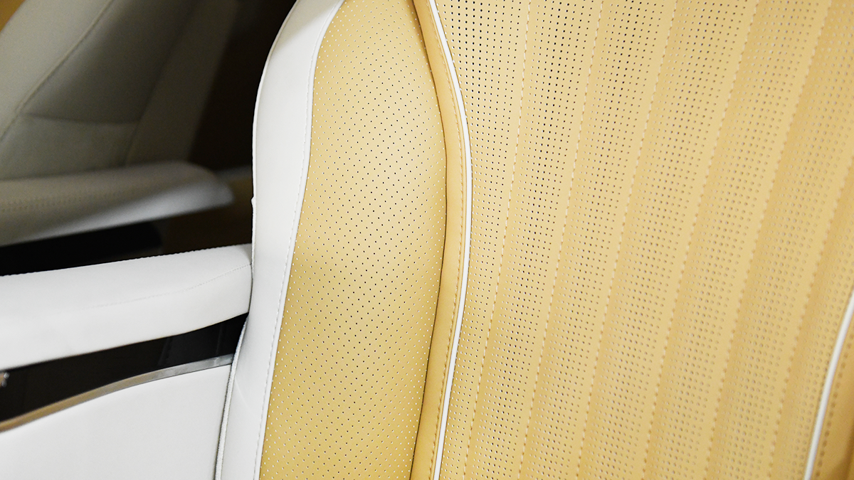 이동 중 편안함을 제공하는 퍼스트 클라스 리무진 시트입니다. 최고급 나파 가죽으로 된 시트로 마사지, 리클라인 등의 기능을 사용할 수 있습니다.