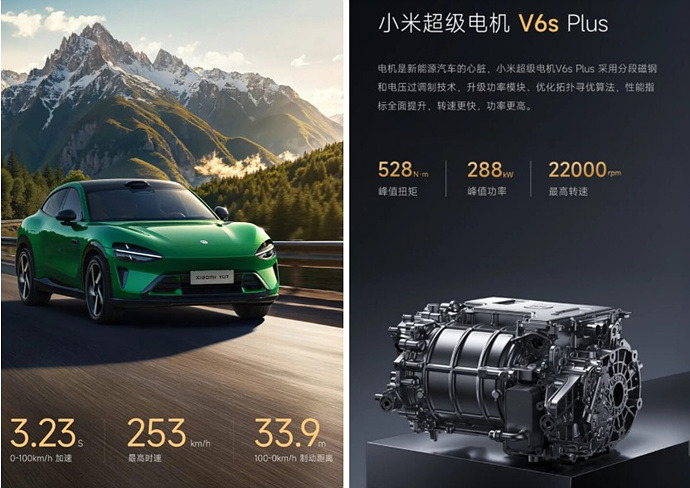 샤오미는 YU7에 HyperEngine V6s Plus 전기모터를 탑재해, 퍼포먼스 SUV로서의 입지를 확고히 했습니다.