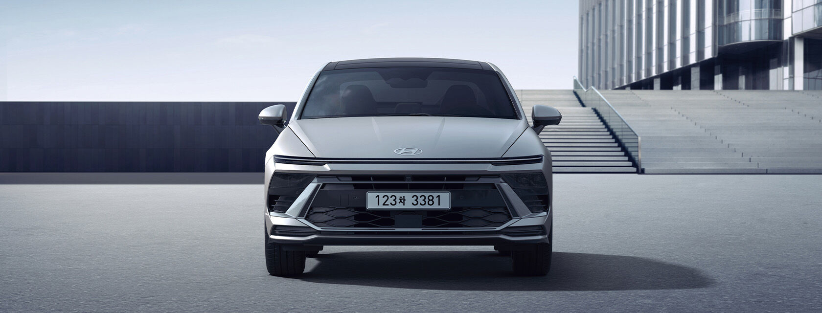 쏘나타 디 엣지는 현대차의 새로운 디자인 언어인 ‘센슈어스 스포티니스(Sensuous Sportiness)’를 적극적으로 반영하고 있다. 전면부에는 ‘심리스 호라이즌 램프(Seamless Horizon Lamp)’가 적용되어 미래지향적인 이미지를 강조하며, 수평형 램프 디자인은 차량을 더욱 넓고 안정적으로 보이게 한다.