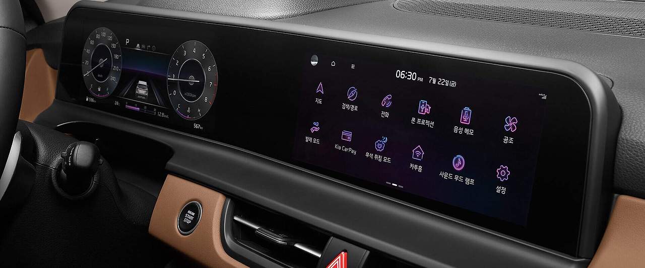 차량 내부는 최신 기술과 프리미엄 소재를 적극 활용하여 한층 고급스러운 분위기를 자아냅니다. 2025 셀토스 하이브리드의 대시보드는 12.3인치 디지털 클러스터와 동일한 크기의 인포테인먼트 터치스크린이 연결된 파노라마 디스플레이 형태로 설계되었습니다.