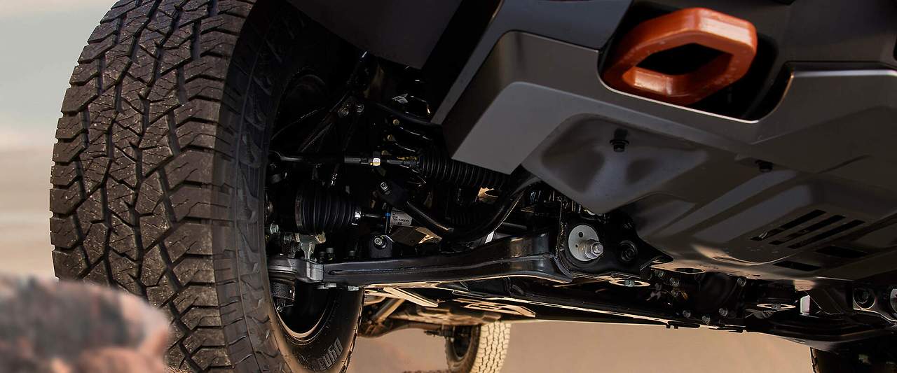 기아 타스만은 오프로드 성능에도 집중했습니다. 바디 온 프레임 플랫폼, 전용 오프로드 모드, 강화 섀시 구성 등이 적용되며 다음과 같은 성능을 갖췄습니다.