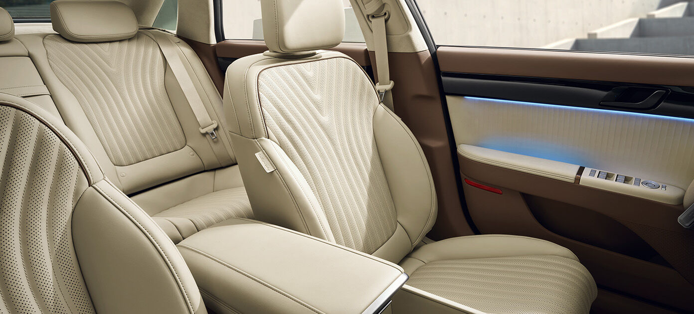 확장된 휠베이스 덕분에 뒷좌석 공간이 더욱 넉넉해졌으며, 전동 리클라이닝 시트 및 냉난방 조절 기능이 추가되어 장거리 주행에서도 편안함을 제공합니다.