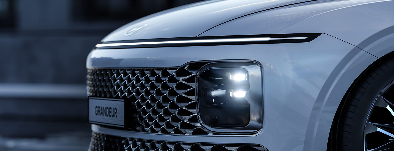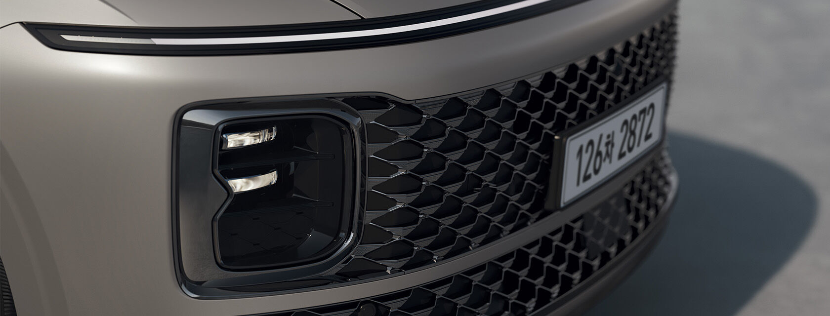 🔹 전면부: 파라메트릭 픽셀 그릴 & 일체형 LED 라이트