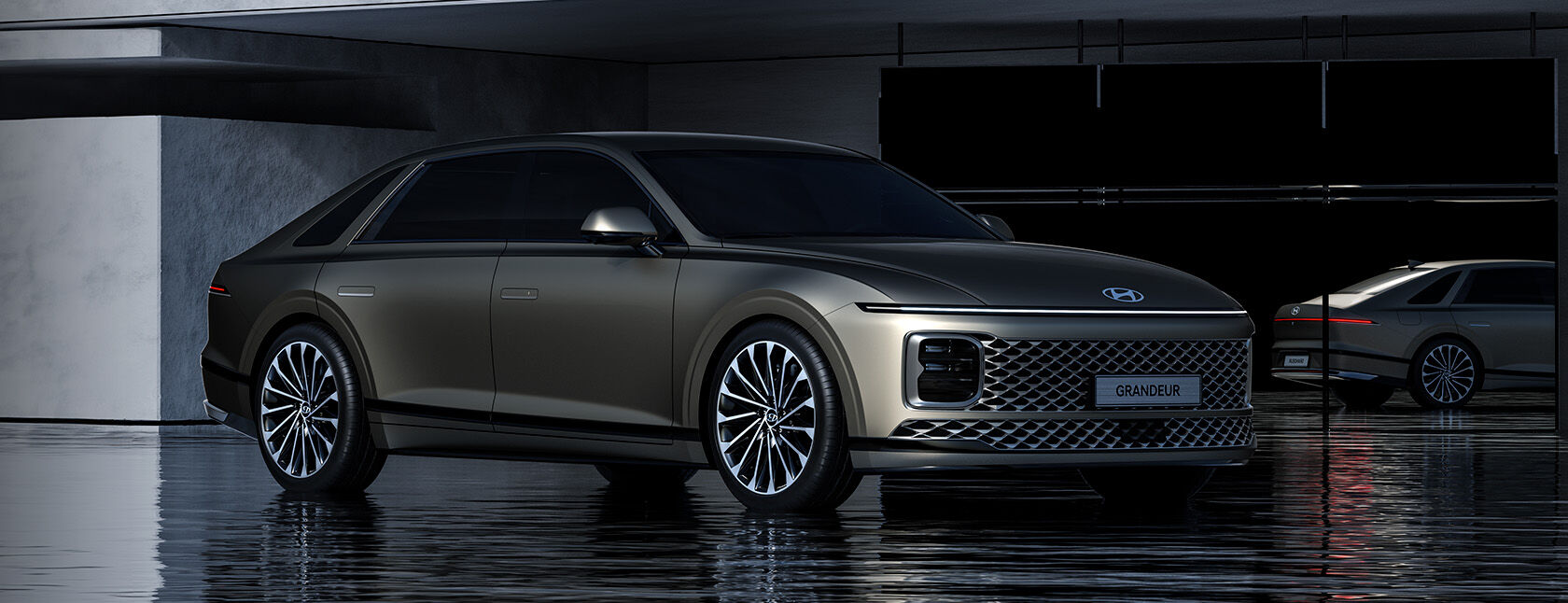 2025년형 그랜저는 기존 모델 대비 휠베이스가 확장되었으며, 크롬 몰딩과 절제된 캐릭터 라인을 통해 세련된 감성을 강조합니다. 19~20인치 휠 디자인은 공기역학적 요소까지 고려해 스타일과 실용성을 동시에 잡았습니다.
