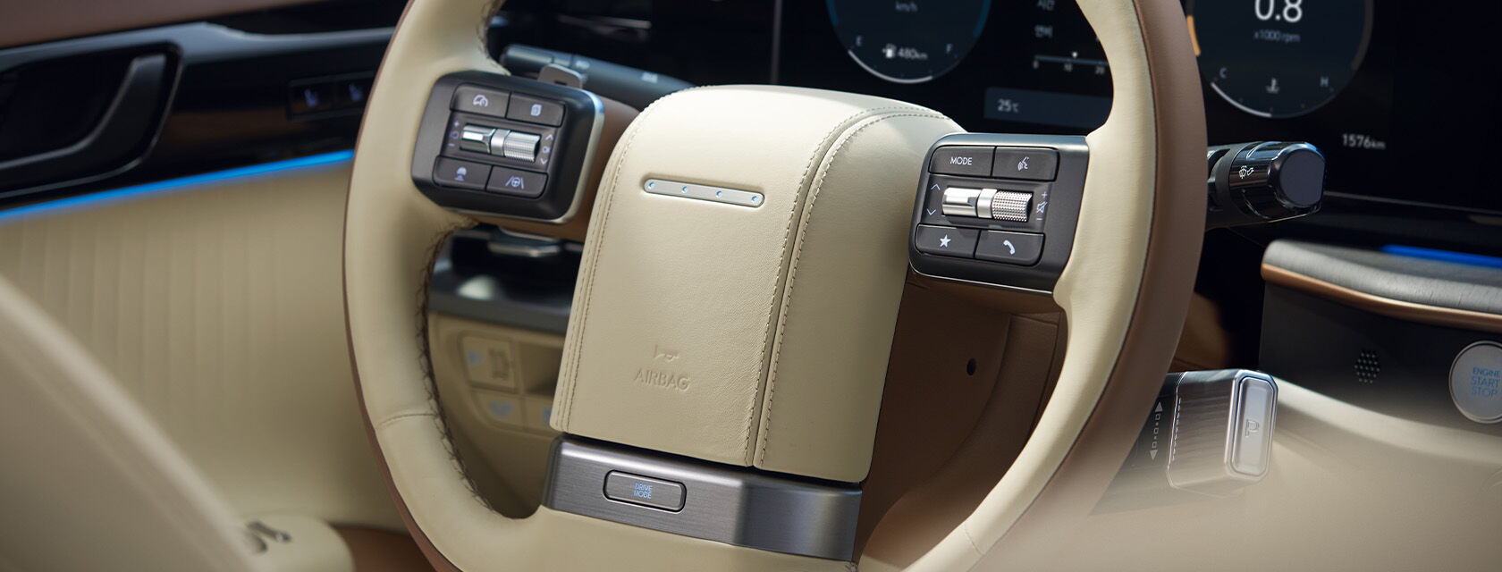 친환경 소재를 활용한 인테리어 마감재와 최고급 나파 가죽 시트가 적용되어 지속 가능성과 고급스러움을 모두 고려한 실내 디자인이 완성되었습니다.